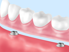 通常より小さなインプラントを埋入し、それを支えとして固定するタイプの入れ歯です。通常のインプラント治療より安価で身体への影響も小さく、入れ歯特有の痛みや不快感から解放されるというメリットがあります。